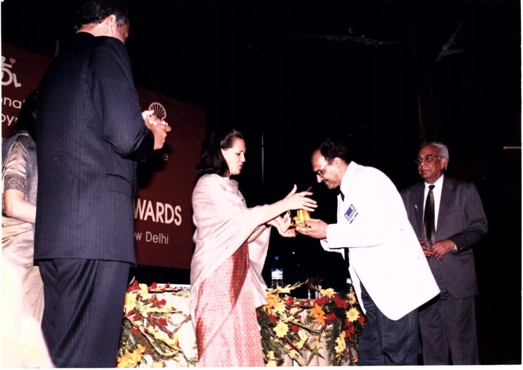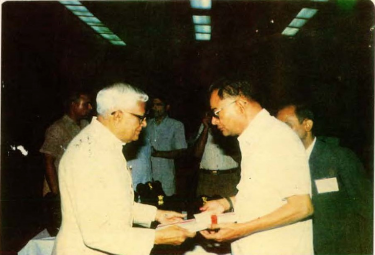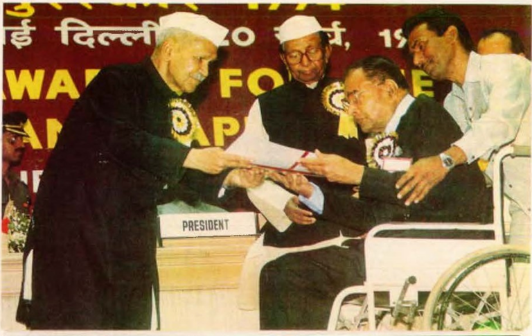 Jagdishbhai receiving the National Award from Hon’ble President of India, Mr. Shankar Dayal Sharma.