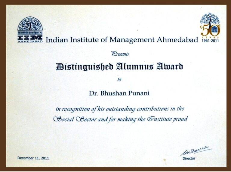 Bhushan Punani receiving the Distinguished Alumnus Award – Indian Institute of Management, Ahmedabad, 11th December, 2011
